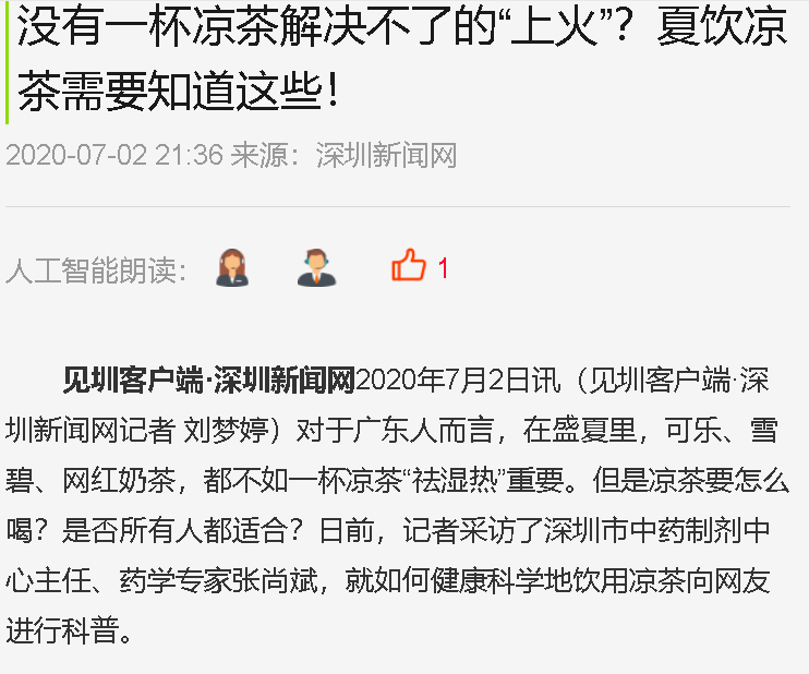 2020年7月2日讯(见圳客户端·深圳新闻网记者 刘梦婷)对于广东人而言,在盛夏里,可乐、雪碧、网红奶茶,都不如一杯凉茶“祛湿热”重要。但是凉茶要怎么喝?是否所有人都适合?日前,记者采访了深圳市中药制剂中心主任、药学专家张尚斌,就如何健康科学地饮用凉茶向网友进行科普。