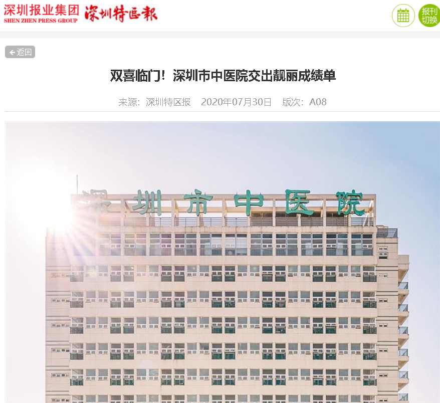 近期,深圳市中医院喜讯连连。6月29日,被视为“国考”的首次国家三级公立医院绩效考核,这家医院高分拿了A+,在全国参评的533家中医、中西医医院中位列第13名。6月30日,国家卫健委公布了2019年度电子病历系统功能应用水平分级评价新增五级及以上医疗机构名单,深圳市中医院位列其中,成为国内首家通过电子病历六级评审的中医医院。