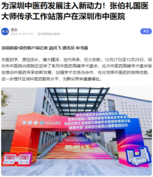 其中,12月28日,由中国工程院院士、国医大师张伯礼院士领衔,中华中医药学会慢病管理论坛、世界中联第八届慢病管理专委会学术年会、张伯礼院士湿浊痰饮类病学术思想传承研讨会等多个高规格论坛在深圳市中医院光明院区举行,上述论坛汇聚了中医药领域众多领军专家,他们深入探讨中医药在慢病管理、临床应用、医院高质量发展等方面的最新进展和未来方向,为参会者带来了最前沿的学术成果和观点。